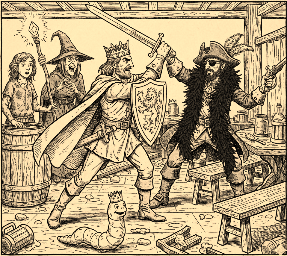 Observe your narrator now, his heart freshly pulped, his ego pureed, as he sits alone in a tavern off the Great Valley Road, bedraggled and hammered. I had left infernal Bloodroot on a stolen horse and begun the journey home to my kingdom. Not that there seemed much point in being a king anymore. All I wanted to do was lie in the gutter and shout insults at the moon.