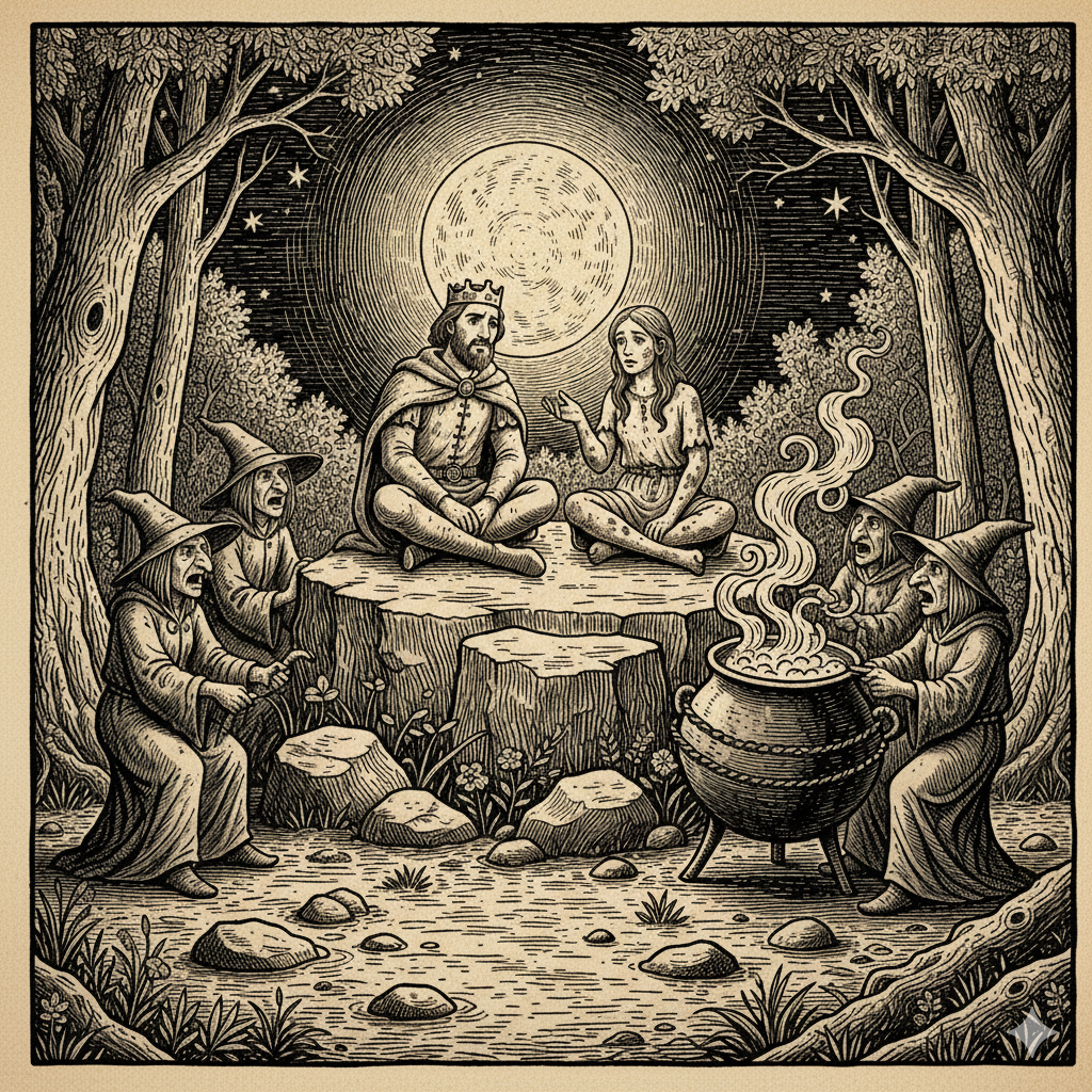 “I have lured you here through dark magic, because I have a prophecy regarding… your sacred quest,” whispered the witch.
